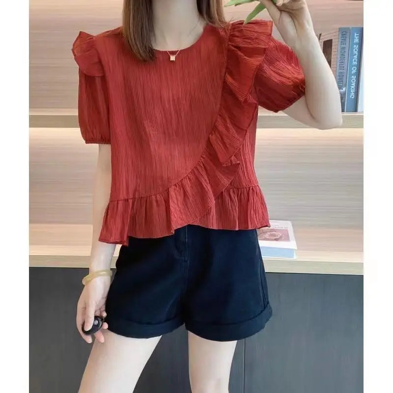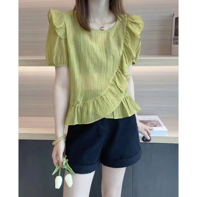 Fashion Ruffles Spliced Loose Puff Sleeve Chiffon Blouse Casual Pullovers Young Style Women's Clothing Oversized Commute Shirt