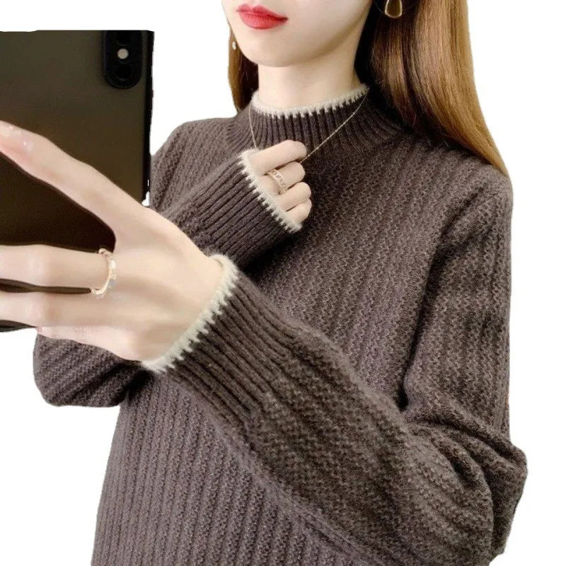 Women's Long Sleeve Top Fall Clothes Sweater For Woman Clothing Half High Pullover Korean Fashion Knitted Sweater In Autumn
