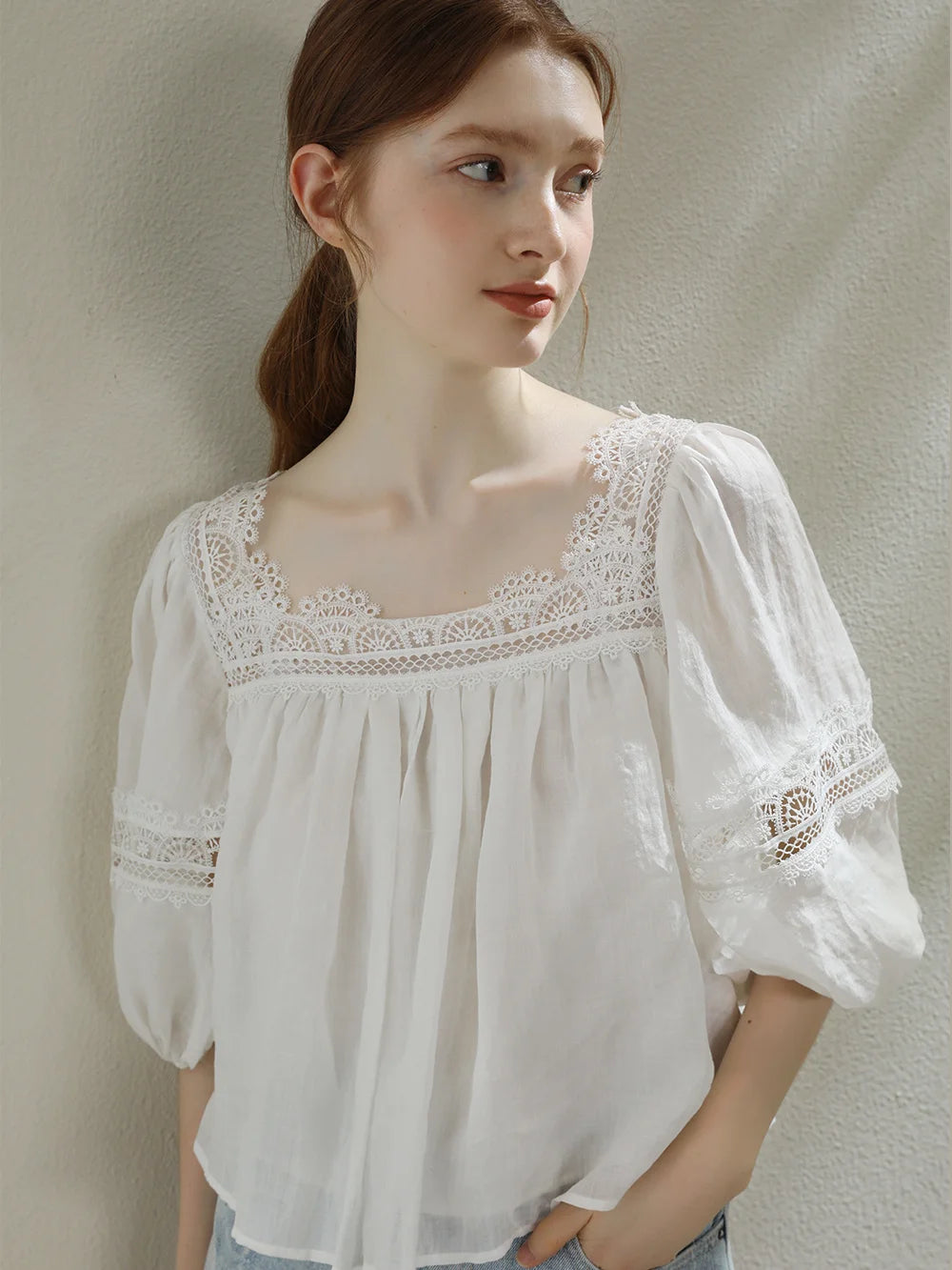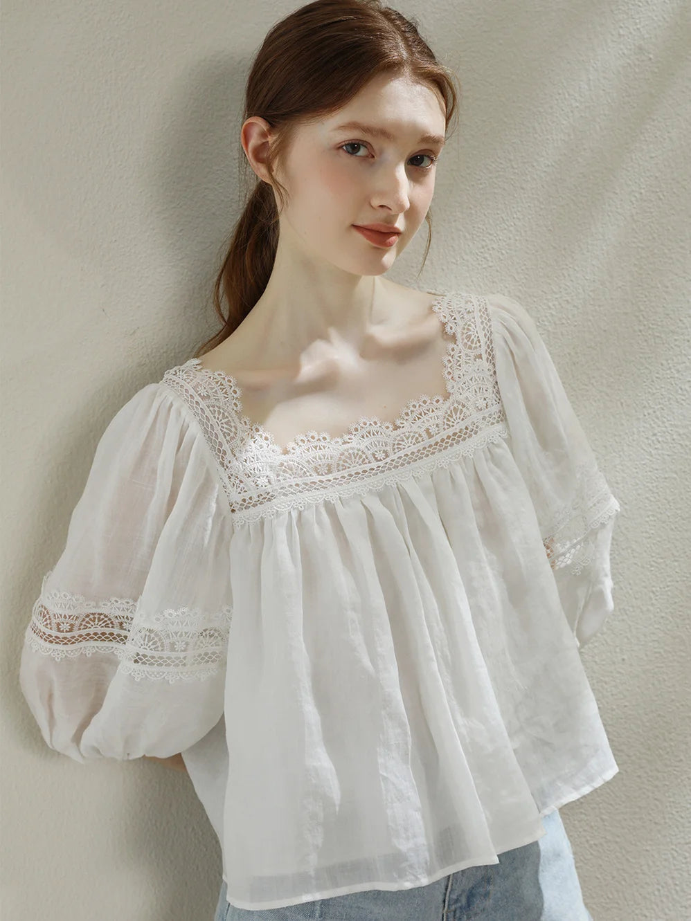 Womens Tops and Blouses Causal Puff Sleeve O-neck Causal Shirts 2022 Spring New Korean Solid